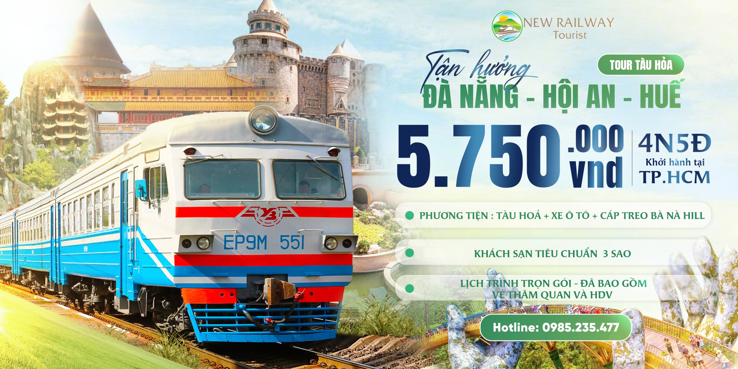 Thời gian : 5 ngày 5 đêm – Phương tiện : xe lửa + ô tô