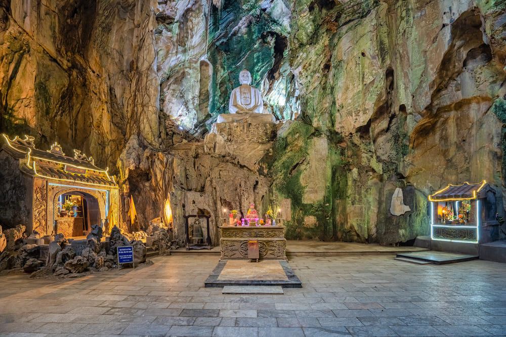 Tiếp tục chương trình đoàn tham quan danh thắng Ngũ Hành Sơn  – cách trung tâm 10km với 5 ngọn núi được nằm theo hệ Ngũ Hành, dường như ai từng biết đến Đà Nẵng là biết đến Ngũ Hành Sơn. Không gian huyền ảo, thơ mộng, chùa chiền và hang động, cây cỏ và tiếng chuông chùa, sóng vỗ và những dằng dặc nghìn trùng…, từ lâu đã thật sự là một cõi thiên thai dành cho du khách.